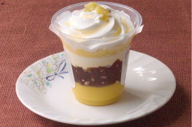 ホイップがもったりタイプ甘くて優しいはちみつ味のソース お芋ダイスはやわめで少しシャクっとしててまわり甘いコーティングされてた ホイップの下にキメ粗めのスポンジがいて一緒に食べるとケーキっぽくなった ゼリーはやわめ少しほろ苦いカラメル味でダイス状のがわりとたくさん■■出典:にゅーんさんのクチコミにゅーんさんのクチコミ
