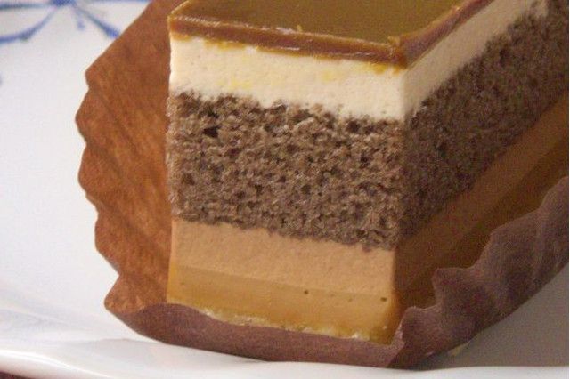 6層オペラ仕立てのケーキはチョコをベースにナッツと塩キャラメルに彩られ、