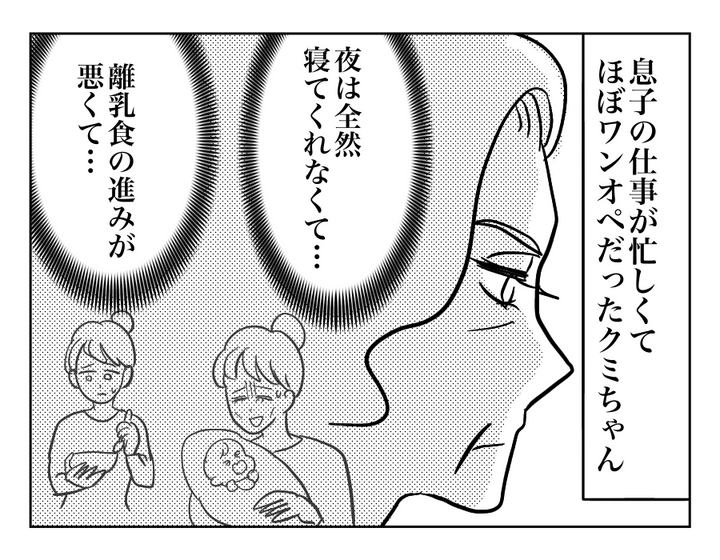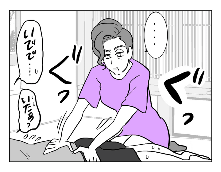 なんとお義母さんは、クミさんの身体をマッサージしてあげながら昔のことを思い返していました。結婚当時はスリムな体型だったクミさん。しかし日々のストレスで甘いものの爆食いを繰り返した結果、どんどん体型に変化が起きていったようです。それは本当にクミさんが望んでいたことなのでしょうか。お義母さんにも、いろいろ思うところがあるようです。