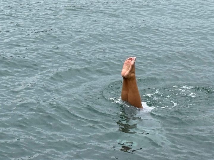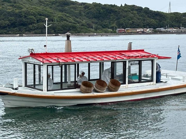 そして外では海女さんの実演が行われ、昔ながらの白い磯着を纏って潜る姿を見られるのは真珠島だけだそうです。アコヤガイの真珠繁殖における浜揚げの季節は12月〜1月頃で、真冬の海に磯着で潜るなんて過酷でしかない……。海女さんが躊躇なく船からいきなり飛び込んだ姿は衝撃! この日の気温は16℃くらいだったのですが、見ているだけでも寒そうでした。もう尊敬しかありません。