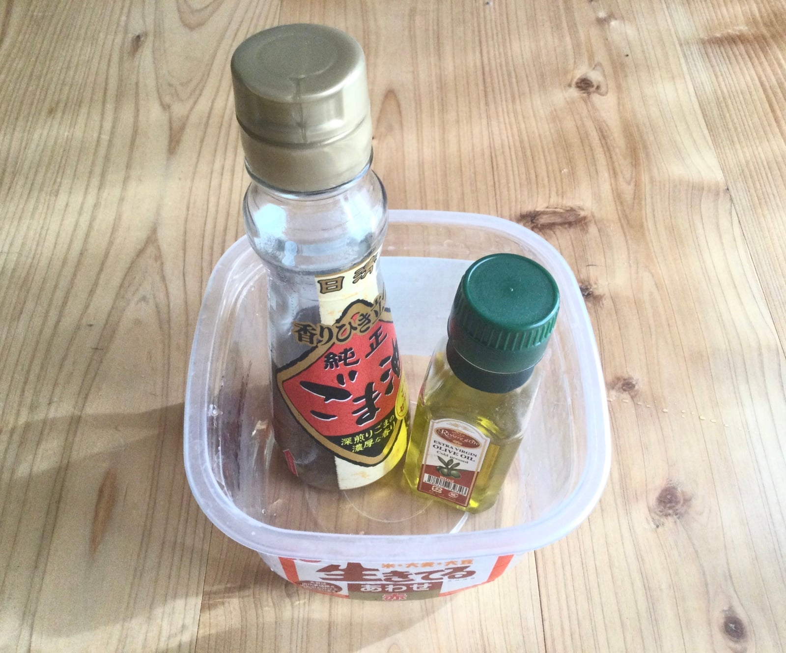 みその空き容器は、そんな食用油の液だれによるベタつきを防ぐのに役立ちます。やり方は簡単で、油の容器をそのままみその空き容器に入れておくだけ。