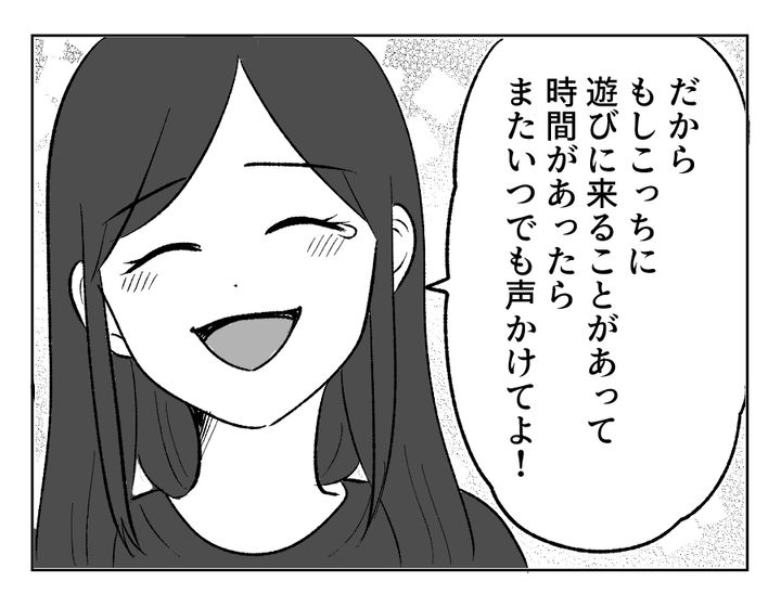 「気にしてないよ」とも「別にいいよ」とも言わず、「次はいつ会える?」と未来の約束。これもおそらくツカサさんなりの気遣いですね。これからもう一度、新しい関係性を築いていこうとしているツカサさん。本当に立派な人だと思います。こんな素敵な友人ができたことが、チヒロさんにとって今回の義実家同居の一番の収穫だったのではないでしょうか。