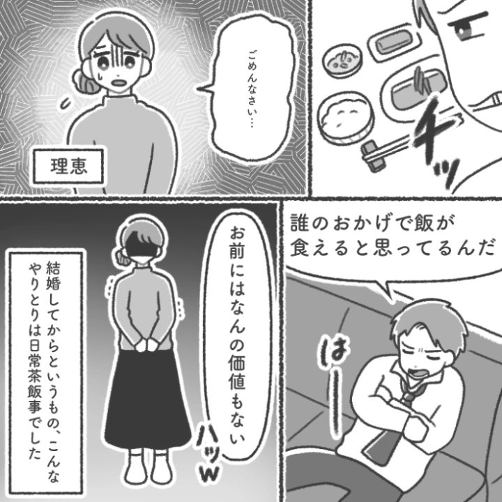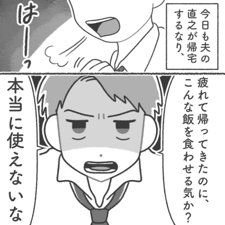 主人公の夫・直之は帰宅するなり用意されたご飯に暴言を吐く。そのようなことを毎日繰り返していて・・・。
