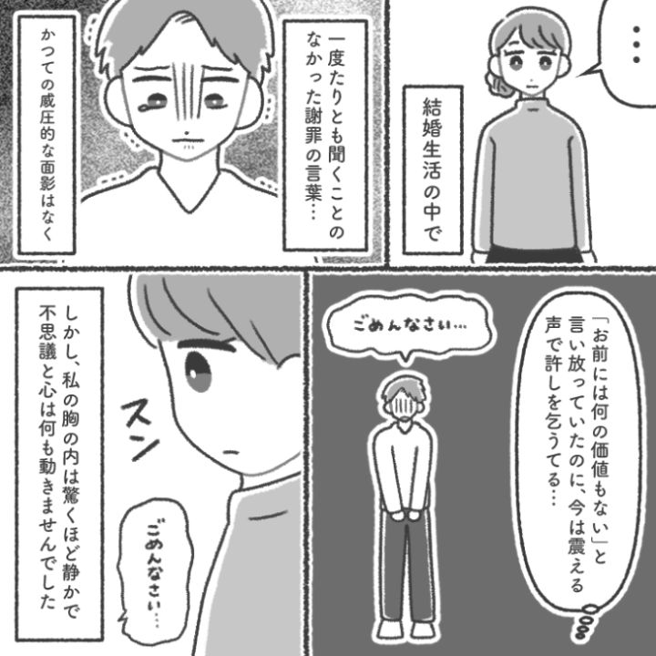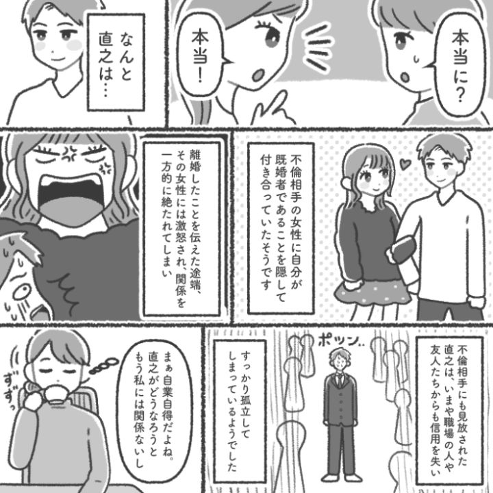 モラハラ夫との毎日に別れを告げ、毎日穏やかで楽しい日々を送っている主人公。一方で夫はまさに自業自得の末路を辿ることになったのでした。
