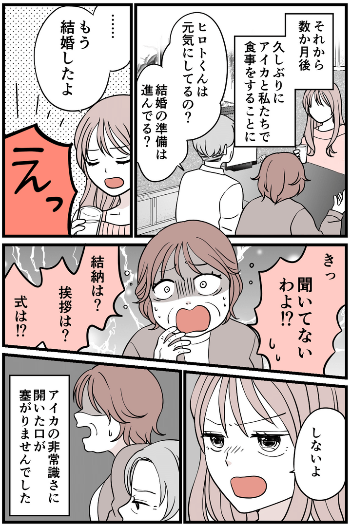 私はその言葉にショックを受け、何も言えなくなってしまいました。どうしてアイカが私たちに報告もなく入籍したのか、まったくわかりません……。
