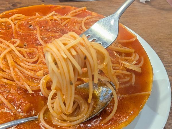 最初に食べれるかな…と心配になった大盛りトマトパスタでしたが、トマトソースの酸味でサッパリとした食べ応えなので、気づけばあっという間に胃袋へ。