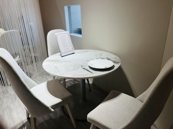予めセッティングされているテーブルに、座りごごち抜群のチェアー。 注文するときは、「アレルギーや嫌いな食べ物はありませんか。メインだけでなく、サラダに関してでもいいですよ」と質問され、いつもと違うランチタイムが始まる予感。