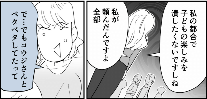私は、誤解を生じさせてしまった祝日の公園遊びの経緯についてもみなさんに説明しました。それから「勝手に人の旦那に触れるのはOKなのに、遊びに行くのはNGとか自分のルールを作り出すのはやめましょうね~」と、リリカにもしっかりくぎを刺したのです。