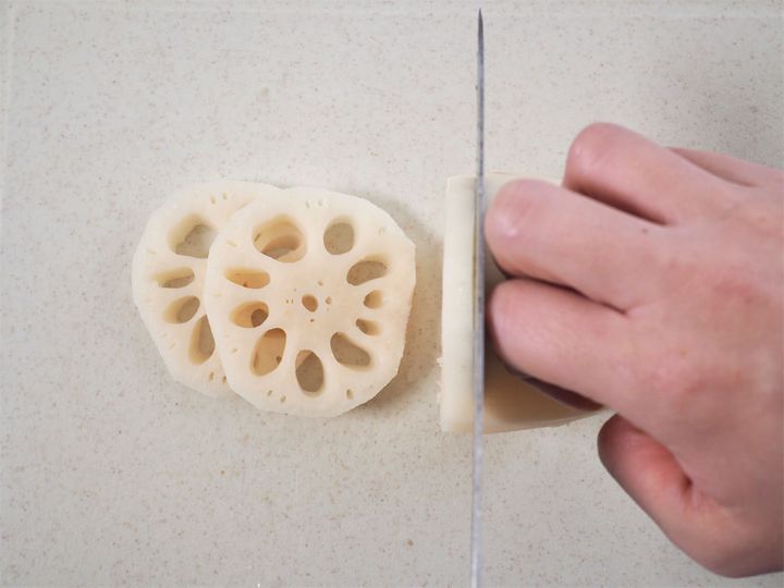 インスタグラムの投稿には“3cm幅“の輪切りと書いてありましたが、大根と同じ厚さなのかと疑問に感じました。小さく載っている画像を見ると1cm幅くらいに見えたので、今回は約1cm幅に切りました。
