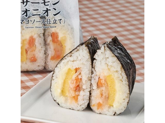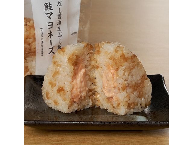 鮭のほぐし身と、鮭の旨みが入った調味料・マヨネーズを和え、だし醤油まぶし飯で包んだおむすびです。 ※宮崎県、鹿児島県では取り扱いがございません。