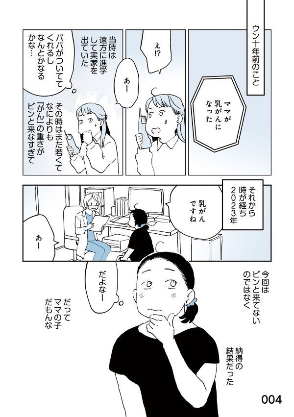 自分が若い頃、母親が乳がんになったときは、いまいちピンとこなかった。でも50代になって、自分の胸に異変を感じたとき……胸がざわついた。