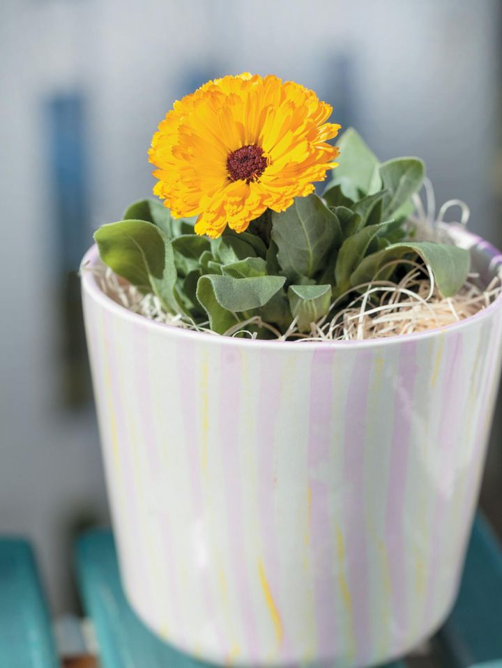 オレンジ色のポットマリーゴールドをパステルカラーの鉢に植えたら、胸キュンの愛らしさ。日本でマリーゴールドというと、センジュギク属のフレンチマリーゴールドを指しますが、ハーブの世界ではこのキンセンカのことで、学名にあるカレンデュラ(Calendula)の名で呼ばれることも。