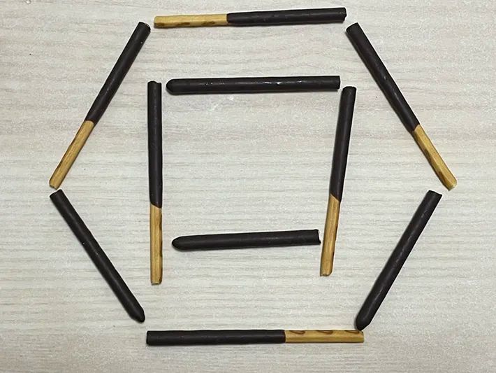 まずは『ポッキーチョコレート』を半分に折って、外側が6角形、内側が4角形になるよう並べましょう。
