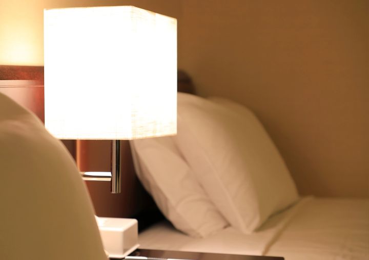 冷房で寝室を快適な温度にするのは大事なこと。つけっぱなしにする場合は、室内が27~28°Cと少し高めの温度になるよう設定。サーキュレーターを併用し、風が体に直接当たらないように壁に向けて、室内に冷気を巡らせる工夫をしましょう。