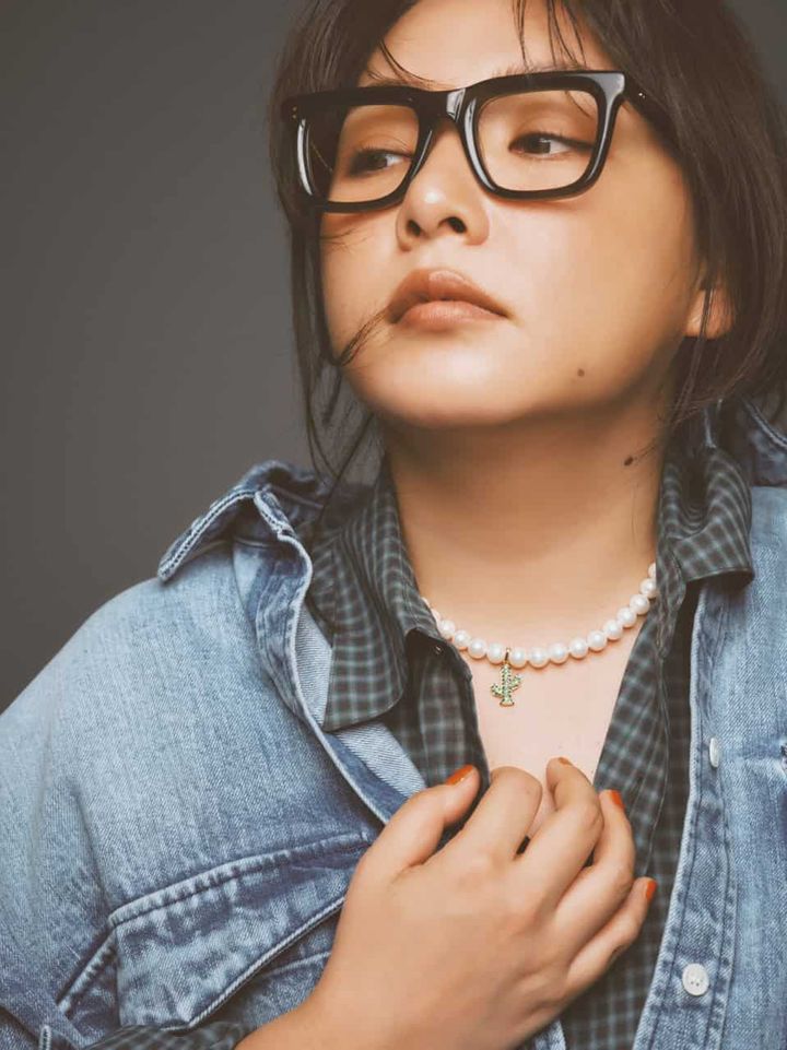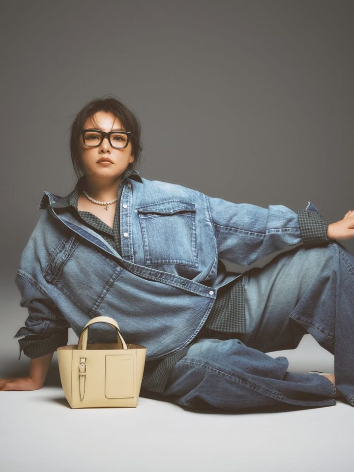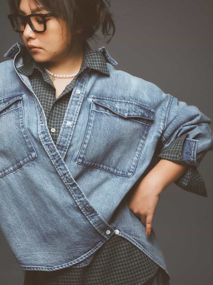 デニムシャツ¥47,300(サードマガジン)チェックシャツ¥36,300(ロエフ/エイチ ビューティー&ユース)デニムパンツ¥57,200(ハイク/ボウルズ)バッグ¥269,500(ヴァレクストラ/ヴァレクストラ ジャパン)メガネ¥49,500(モスコット/モスコット トウキョウ)ネックレス¥101,200サボテンのチャーム¥236,500(ともにビジュードエム/ビジュードエム六本木ヒルズ)