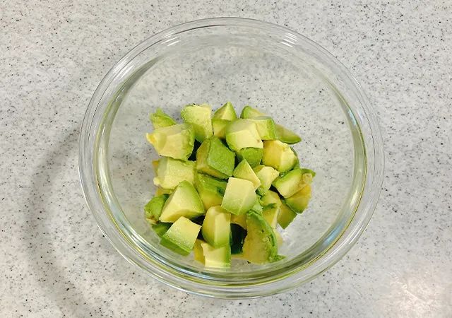まず、アボカドを1cm程度の角切りにして、ボウルに入れます。