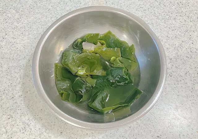 ワカメは水に浸けて戻しておきましょう。
