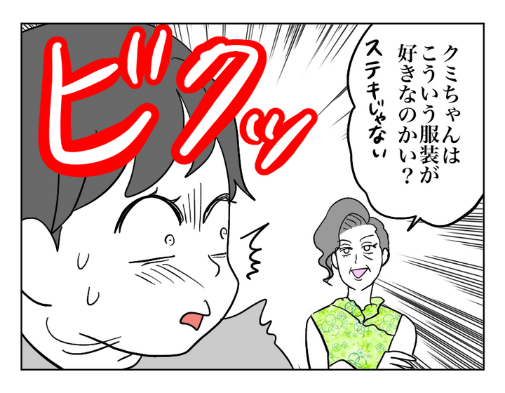 あなたはお義母さんのことを「恥ずかしい!」と感じたことはありますか? 今回の主人公クミさんは、お義母さんが派手なウェアを着て近所をジョギングするのが恥ずかしいようです。しかしお義母さんはそれが自分の個性だからと気にする様子はありません。一方でクミさんはいつも自分のことを隠すような目立たない服を着ていて……? お義母さんとのやりとりをとおして、クミさんは自分自身の思いと向き合うことになるのです。