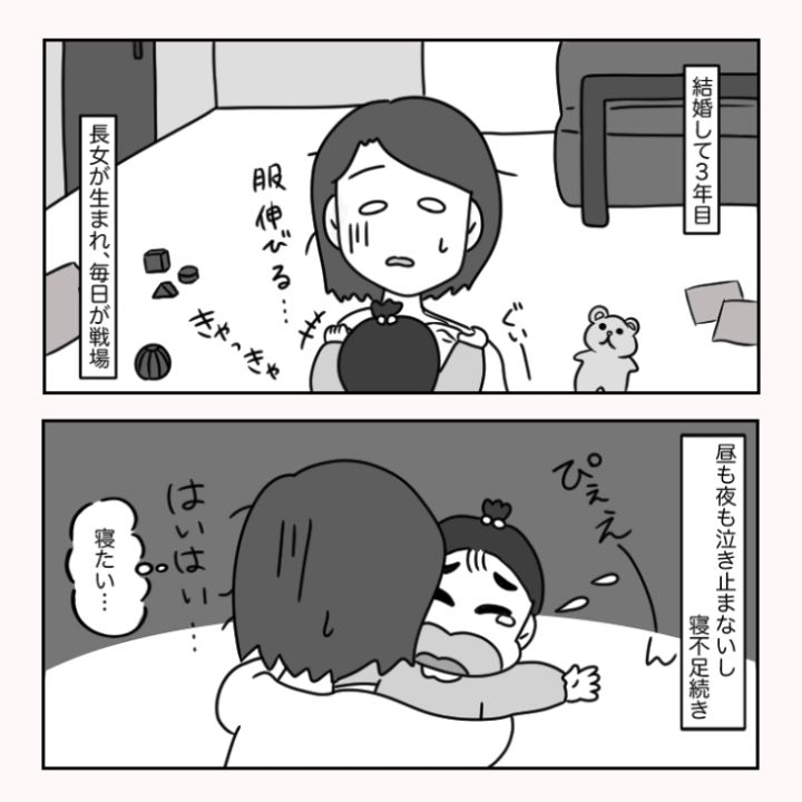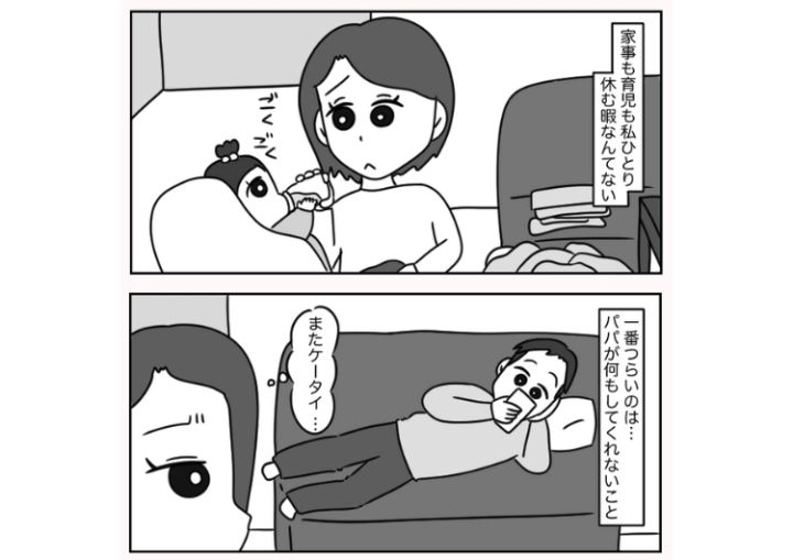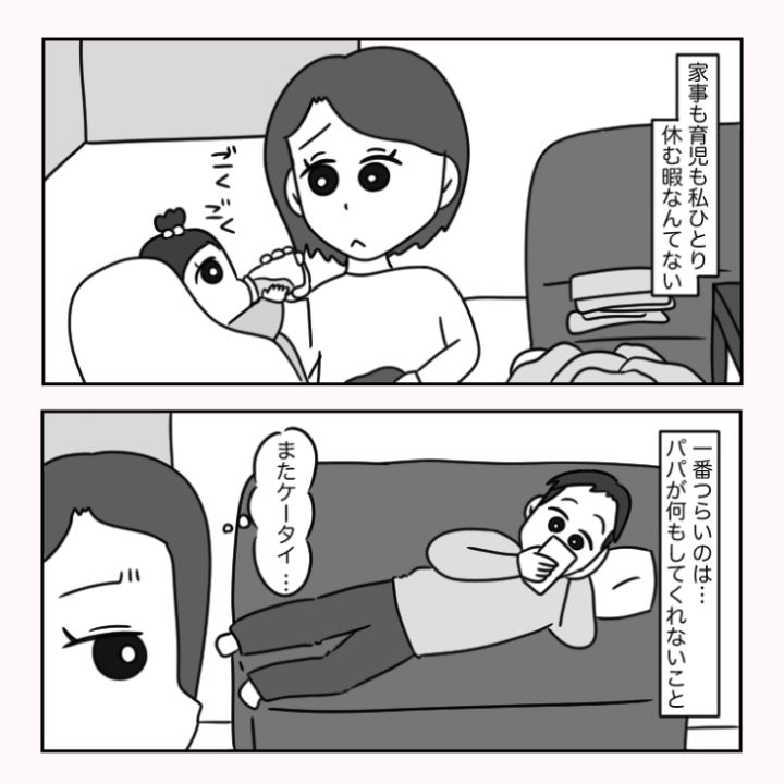 主人公は結婚して3年目。最近が長女が誕生し、慣れない育児で毎日疲弊しているのですが夫はというと・・・。