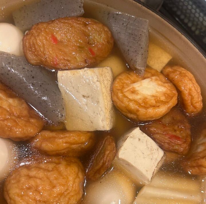 私が入れたのは大根1本、卵8個、こんにゃく、あとは練り物少々。(4人分)おでんは私は基本大根と卵とこんにゃくとはんぺん派なので他に色々入れたくないのですがリクエストもあり、焼き豆腐やちくわぶなども入れました。ポイントは大根、卵、こんにゃくは1時間以上煮込むこと。その他の具材は15分くらいでいいそうです。1時間もかかるのか~と思う人もいるかと思いますが、本当にポイントはここだけなので、そこはなんとか許して~。これだけの分量を3人で一晩で食べきってしまいました……。