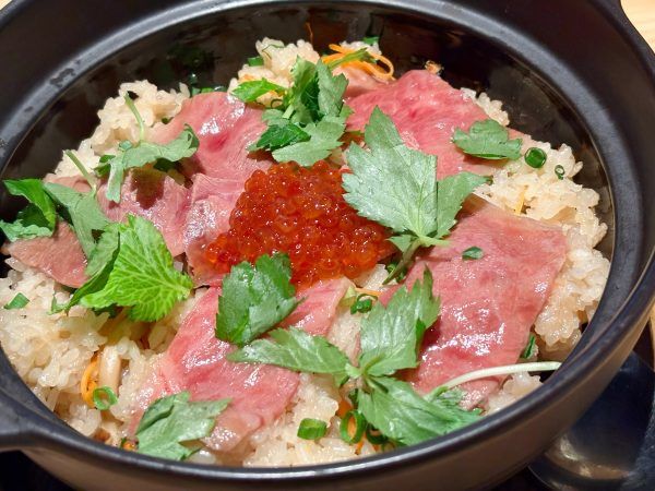 しっとり柔らかな和牛の脂と、いくらのプチプチ、出汁がしみ込んだお米、これは絶品!