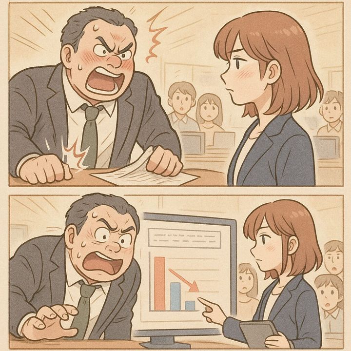 「お前のせいで売上落ちた!」卑怯な上司の嘘。社内の共有データで嘘がバレる、すると上司が…【短編小説】