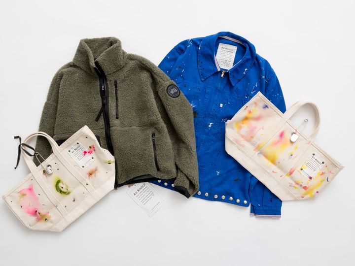 パッチワークや刺繍、ペインティングなど愛嬌のあるデザインが施された鮮やかなジャケットとバッグは、さまざまなアーティストのデザインで新しい息吹が注がれたデッドストック。