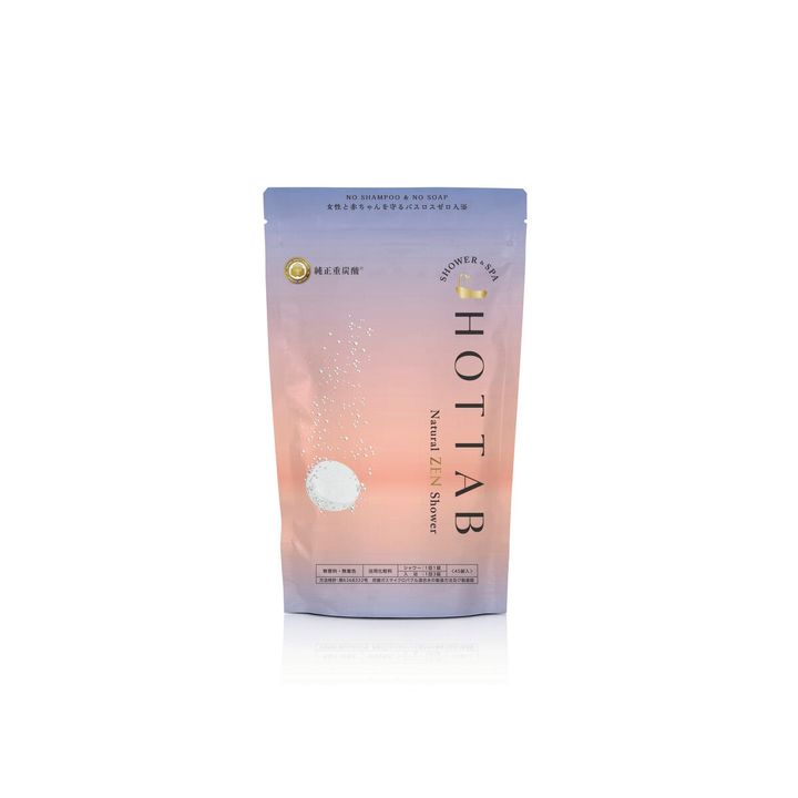 からだを芯から温めて血行を促進する重炭酸入浴剤。専用シャワーヘッドにセットしても、入浴剤と使用してもOK。ホットタブ ナチュラル ゼン 45錠 ¥4,510/ホットタブお客様窓口