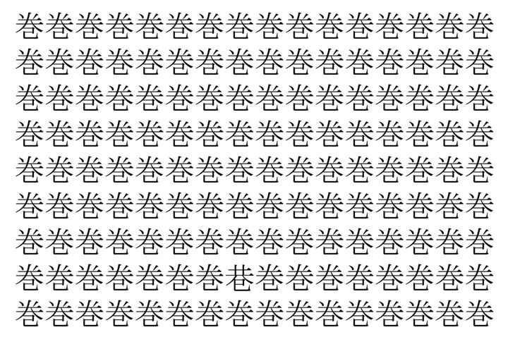 2. 【脳トレ】「巻」の中に紛れて1つ違う文字がある!?あなたは何秒で探し出せるかな??【違う文字を探せ!】