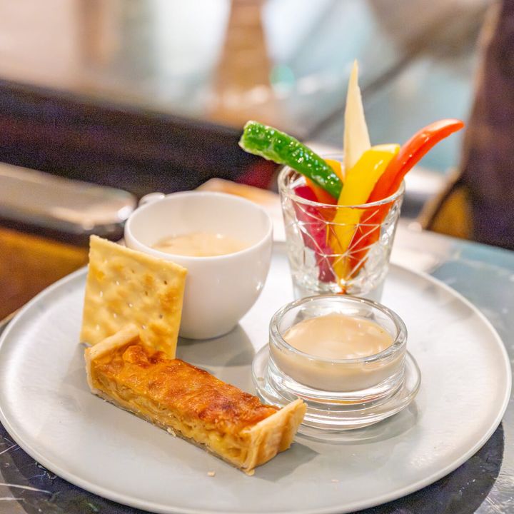 そして、玉ねぎの甘みを引き出した「オニオングラタンのキッシュ」が味のアクセントとなり、前菜としての完成度を高めています。
