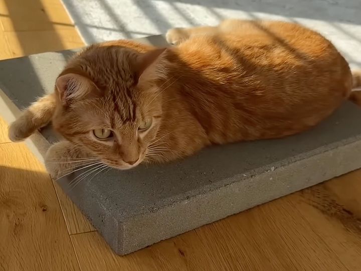 お外の日向ぼっこ気分をおうちで再現! 専用ブロックでご満悦な茶トラさん