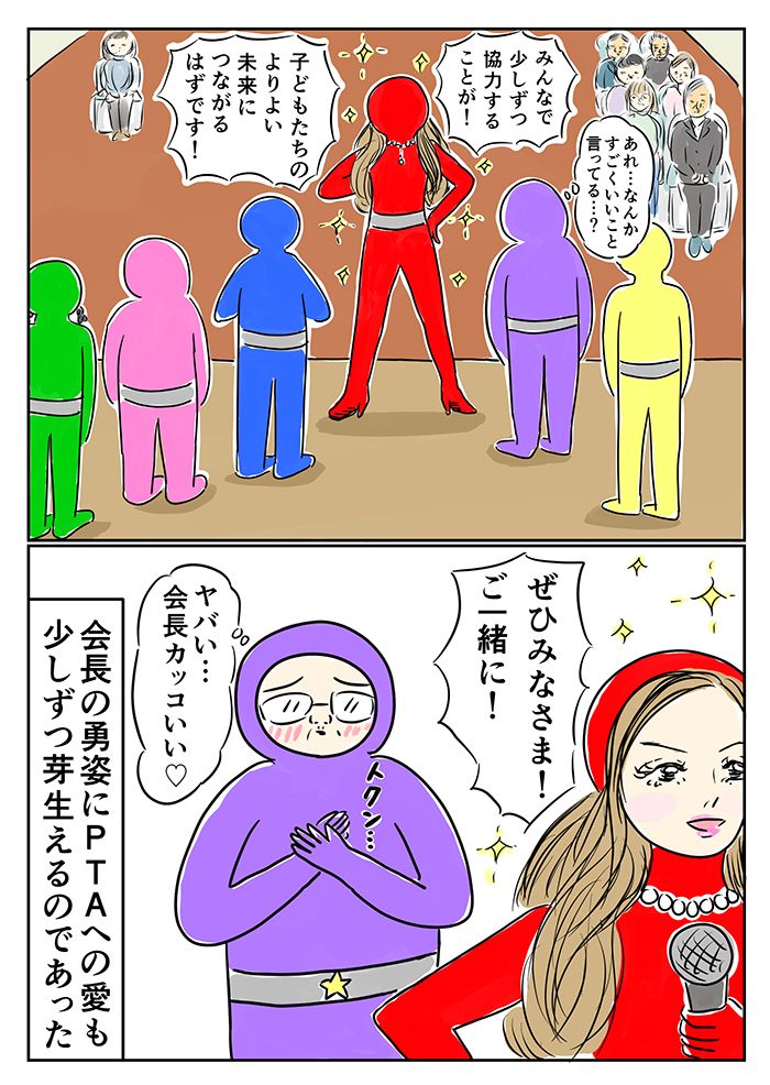 PTAの総会、戦隊の姿でたくさんの保護者の前に立つのはキツイ、と思ったら…?【ご奉仕戦隊★PTA・5】