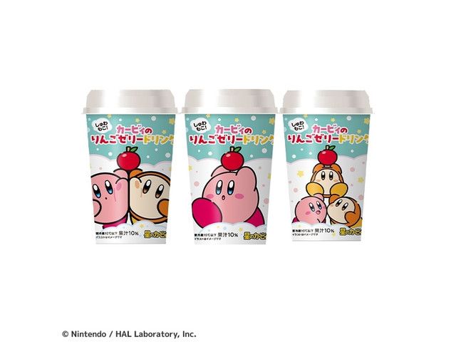 カービィと一緒に“しゅわもこ”が楽しめる、りんご味のゼリードリンクです。別添のしゅわもこの素を混ぜると、泡がもこもこ出てきます。パッケージは3種類です。