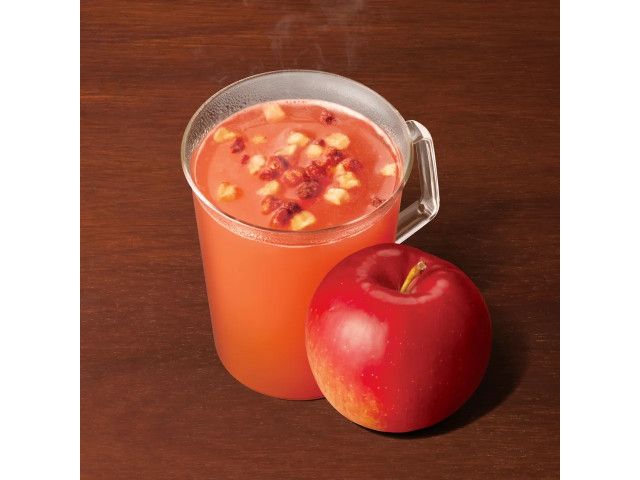 一杯一杯丁寧にバリスタがスチームしたアップルジュースに、シナモンやクローブ、オレンジ、クランベリーなどの風味を合わせ、さらにりんごとストロベリーのフリーズドライをトッピング。一口飲むと、スパイスの香りとクランベリーを思わせる酸味が重なり、やさしい甘みとともに豊かな食感が広がります。冬ならではの特別感のある『ホット アップル サイダー』で心とからだもあたたまるひとときをお過ごしください。