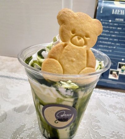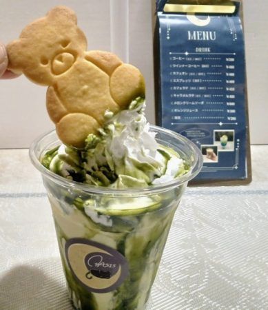 ここに+30円でホイップとくまちゃんクッキーが付きます。これ良心的ですね、30円なら迷わずプラスしますね。 映えを考えたら色がきれいなストロベリーか抹茶かな…。抹茶のほうがすっきりしていそうでこちらを注文。