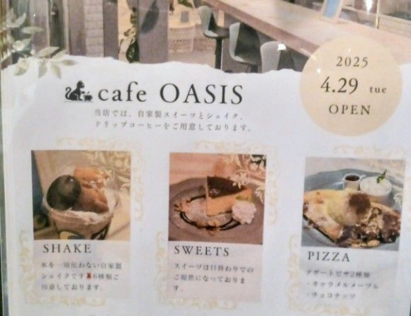 今年4月にOPENされたのですね。シェイク・スイーツ・ピザがおすすめのようです。 他にもランチやドリンクメニューがあります。
