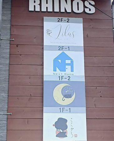 駐車場は直ぐにみつけたものの、お店は若干迷ってしまいました。CAFE OASISはこちらのビル1階奥。看板は下から2番目。このロゴを頭に入れておけば迷わないと思います。