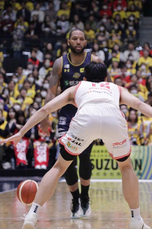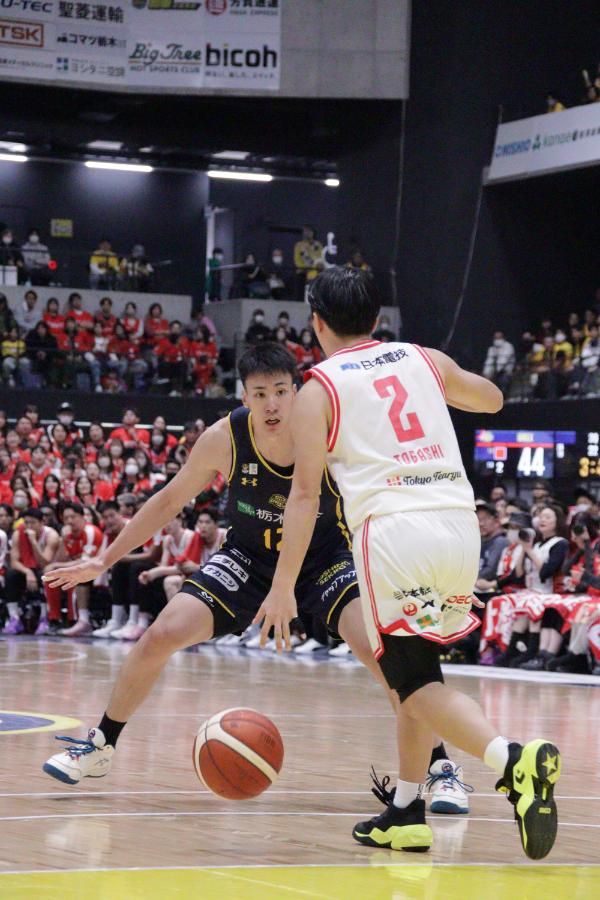 千葉ジェッツのエース#2 富樫選手と、ブレックスの#12 高島選手とのマッチアップは、試合の始まりから終わりまで、ずっと激しく続きました。意地と意地のぶつかり合いでした。