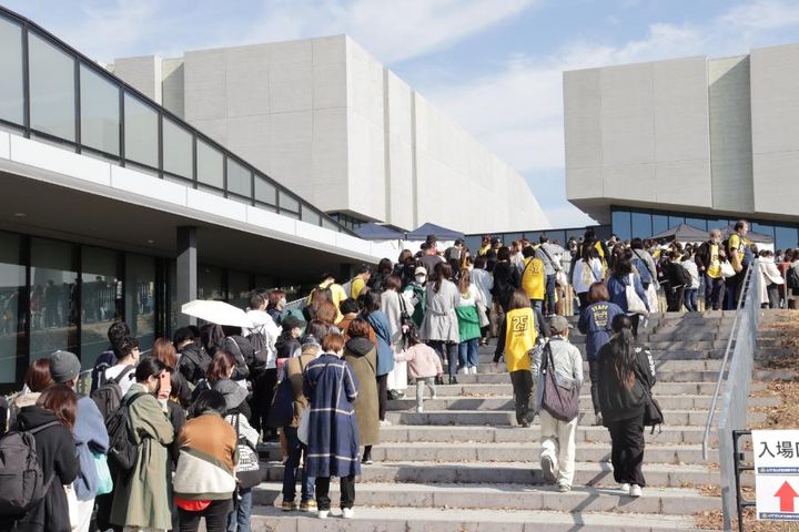 入場開始まで一時間以上ありますが、アリーナ入口は、今日の大一番を待ちきれない両チームのファンで長蛇の列でした。