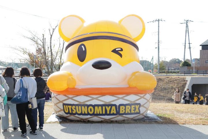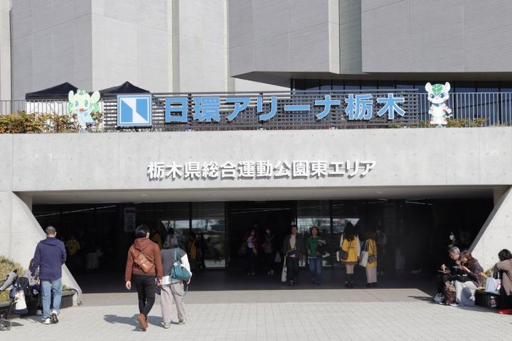 会場の日環アリーナ栃木に着きました。#028 チームマスコット・ブレッキーが出迎えてくれました。