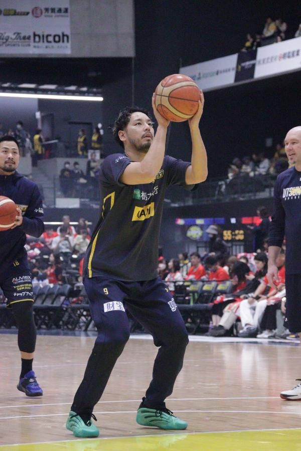 ディフェンスと3Pシュートの名手、#9 遠藤選手です。今日の相手は、昨日以上にディフェンスの強度を上げてくることでしょう。今日は、相手選手の裏をかいて、遠藤選手にはコーナースリーを決めてほしいです。