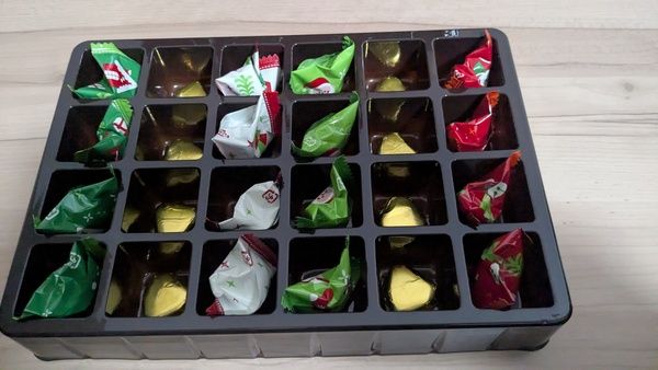 クリスマスまでの24日分のカウントダウンができるぺ―パ―ボックスが入っています。