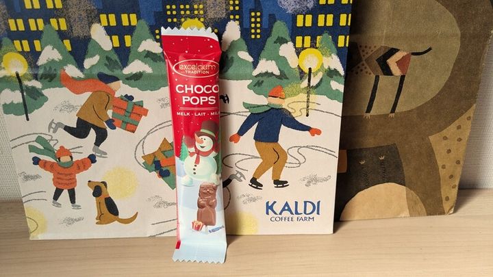 カルディコーヒーファーム公式サイト未掲載のサンタ形・棒付きミルクチョコレートです。デザインは3種類あります。