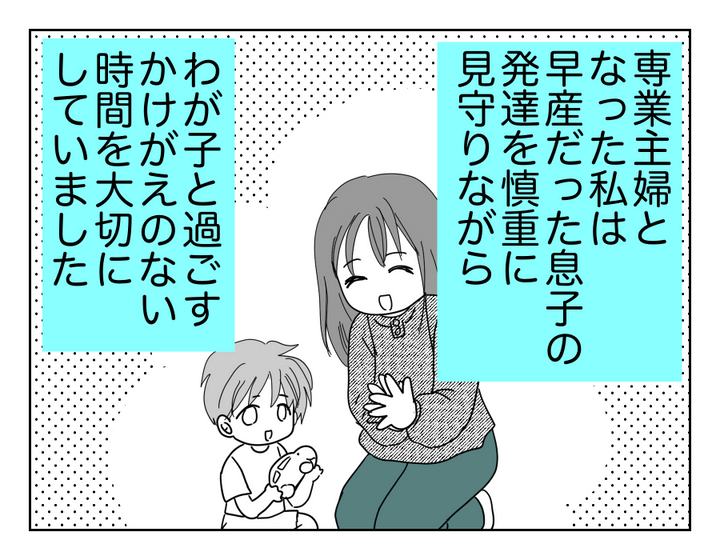 私(マイ)は、夫のジュンと一人息子のセイヤを育てています。私の人生は、結婚によって大きく変わってしまいました。28歳で夫と結婚をして、30歳で息子を早産。出産の際は生死の境をさまよいました。私の体調、そして息子の発達面などを考慮して、仕事を退職。子育てに専念することにしました。