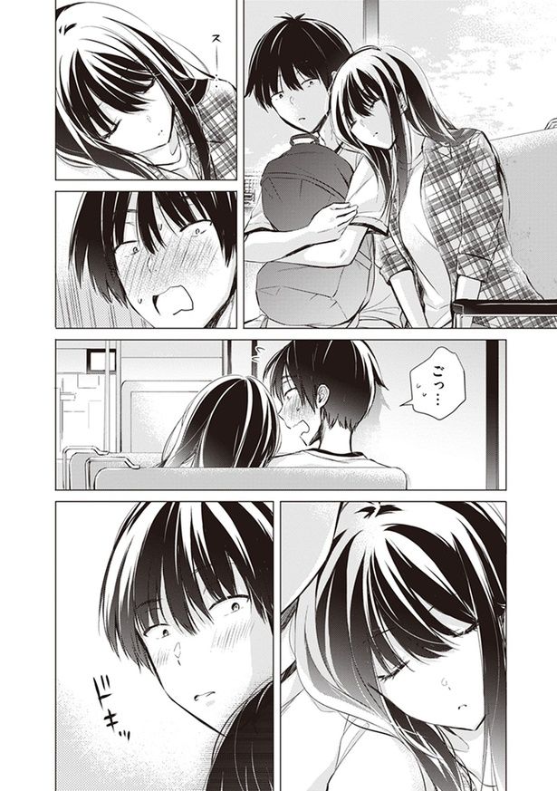 プール帰りのバスの中。居眠りする男子高校生の肩にもたれかかり、美少女の顔が近づくと…/後藤さんは振り向かせたい 2⑫