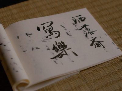京伝が「じゃ 字はどうします? そのまま書くと 洒落臭い(しゃれくさい) 洒落斎(しゃらくさい)ってとこかね?」と問いを投げかけると、蔦重は紙に筆で字を書き始めました。