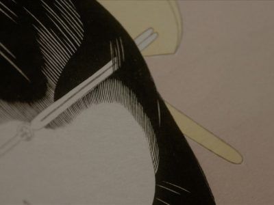 ていは完成した「歌撰恋之部」を歌麿に渡し、蔦重が毛割(けわり)の彫り、色味、着物の柄も歌麿の目線で考え、摺師にしつこくやり直させていたことを伝えます。