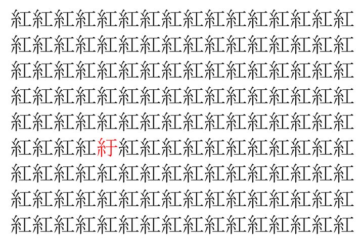 【脳トレ】「紅」の中に紛れて1つ違う文字がある!?あなたは何秒で探し出せるかな??【違う文字を探せ!】