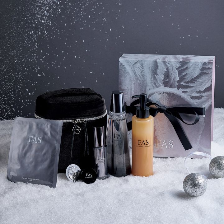 9月に発売した話題のアイクリーム「ザ ブラック リフト アイ クリーム」に大人気クレンジングジェル、みずみずしさが持続する化粧水「ザ ブラック エッセンス」が現品で入った豪華なコフレ。クリームやマスクのミニサイズにシートマスクもセットされ黒米発酵液のパワーをフルラインで堪能できる。バニティポーチは日常使いに便利。FAS プレミアム ホリデー コフレ 2025 ¥33,990(シロク)