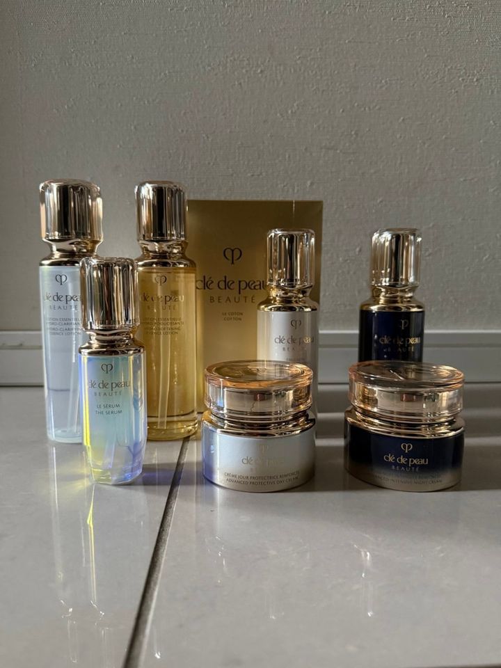 洗顔後に美容液ル・セラムを使用して滑らかにし、ローションで透明感を。その後に朝と夜で分かれた乳液、クリームでハリと弾力を。